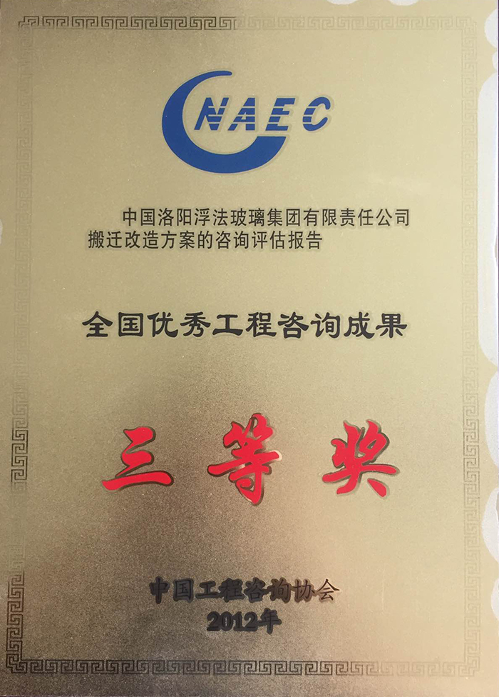 全國優(yōu)秀工程咨詢成果三等獎(jiǎng)(2012年)