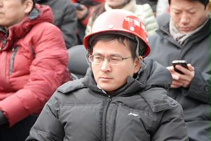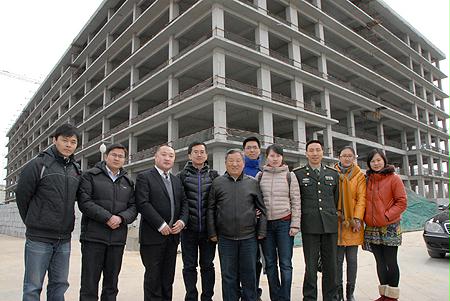 國(guó)資委機(jī)關(guān)青年志愿者與喬老在工地前合影