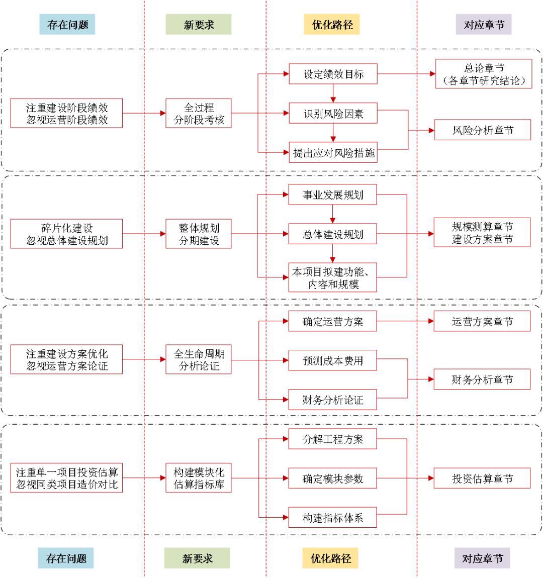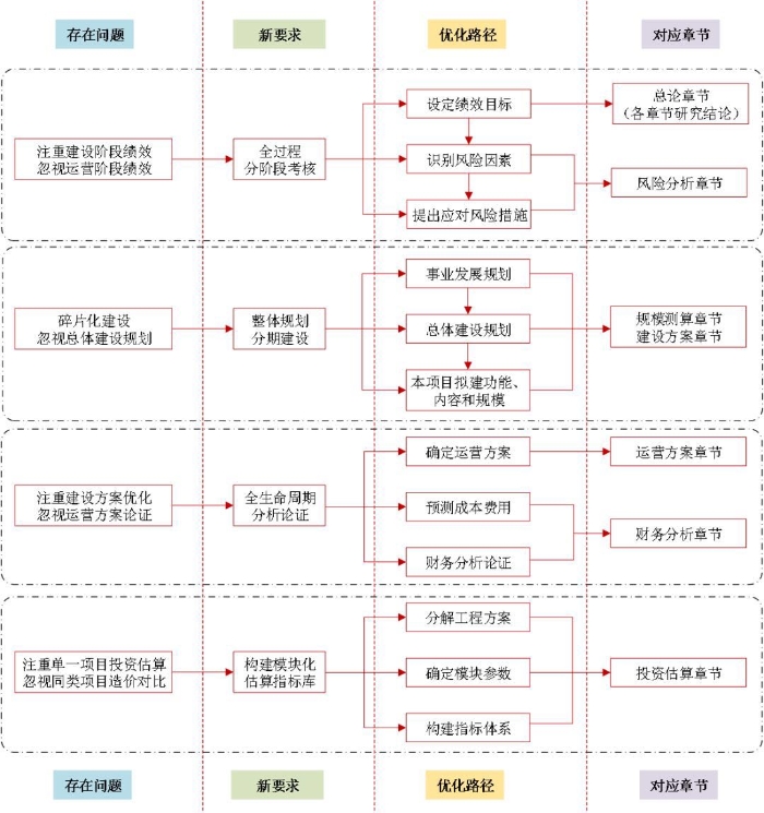 《政府投資條例》是我國(guó)深化投融資體制改革和“放管服”改革的重要成果,是我國(guó)政府投資領(lǐng)域的首部行政法規(guī)。針對(duì)以基本公共服務(wù)項(xiàng)目為代表的政府投資項(xiàng)目可行性研究突出存在的“碎片化”“階段化”“片面化”等問題,本文結(jié)合基本公共服務(wù)項(xiàng)目的特點(diǎn),提出了高質(zhì)量開展可行性研究的優(yōu)化路徑,即在重視收集項(xiàng)目資料和現(xiàn)場(chǎng)踏勘工作的基礎(chǔ)上,重視績(jī)效考核指標(biāo)、總體建設(shè)規(guī)劃、全生命周期分析、模塊化估算指標(biāo)體系等內(nèi)容的論證。 一、基本公共服務(wù)項(xiàng)目的主要特點(diǎn) 基本公共服務(wù)是指由政府主導(dǎo)、保障全體公民生存和發(fā)展基本需要、與經(jīng)濟(jì)社會(huì)發(fā)展水平相適應(yīng)的公共服務(wù)。基本公共服務(wù)項(xiàng)目作為保障群眾切身利益和社會(huì)民主、公平、穩(wěn)定的基礎(chǔ)設(shè)施,具有維系社會(huì)公正、體現(xiàn)社會(huì)公益性的作用。 基本公共服務(wù)范圍,一般包括保障基本民生需求的教育、就業(yè)、社會(huì)保障、醫(yī)療衛(wèi)生、計(jì)劃生育、住房保障、文化體育等領(lǐng)域的公共服務(wù);廣義上,還包括與人民生活環(huán)境緊密關(guān)聯(lián)的交通、通信、公用設(shè)施、環(huán)境保護(hù)等領(lǐng)域的公共服務(wù),以及保障安全需要的公共安全、消費(fèi)安全和國(guó)防安全等領(lǐng)域的公共服務(wù)。本文中的基本公共服務(wù)項(xiàng)目是指狹義基本公共服務(wù)領(lǐng)域內(nèi)的工程建設(shè)項(xiàng)目,具有項(xiàng)目公益性強(qiáng)、重點(diǎn)保基本需求、供給主體多元化、政府監(jiān)管力度大等特點(diǎn)。 (一)公益屬性顯著 基本公共服務(wù)項(xiàng)目的基本特征是公益性,具體表現(xiàn)在三個(gè)方面。其一,該類項(xiàng)目多為民生項(xiàng)目,以保障全體公民生存和發(fā)展的基本需求為目的,需要體現(xiàn)均等化、普惠化和便捷化;其二,該類項(xiàng)目具備較強(qiáng)的社會(huì)效益、生態(tài)效益,受益群體廣泛、外部效果顯著、可持續(xù)影響突出,對(duì)調(diào)整社會(huì)結(jié)構(gòu)、維護(hù)社會(huì)穩(wěn)定、促進(jìn)經(jīng)濟(jì)社會(huì)協(xié)調(diào)健康發(fā)展有積極作用;其三,該類項(xiàng)目不以營(yíng)利為目的,具有投資額度多、建設(shè)規(guī)模大、服務(wù)年限長(zhǎng)、收益時(shí)間滯后、投資回報(bào)率低等特點(diǎn),一般由政府“兜住底線”。 (二)重點(diǎn)?;拘枨?/strong> 基本公共服務(wù)項(xiàng)目的核心界定是保基本。其一,基本的范圍和內(nèi)容應(yīng)隨著當(dāng)?shù)亟?jīng)濟(jì)社會(huì)發(fā)展水平和階段的提高進(jìn)行動(dòng)態(tài)調(diào)整;其二,該類項(xiàng)目的決策、建設(shè)、管理、供給以及績(jī)效評(píng)價(jià)應(yīng)形成系統(tǒng)性、整體性和制度性;其三,該類項(xiàng)目的功能定位、建設(shè)標(biāo)準(zhǔn)、建設(shè)規(guī)模和資源配置應(yīng)嚴(yán)格遵循國(guó)家、行業(yè)和地方相關(guān)標(biāo)準(zhǔn)和規(guī)范,不得隨意擴(kuò)大建設(shè)規(guī)模,提高建設(shè)標(biāo)準(zhǔn)。 (三)供給主體多元化 基本公共服務(wù)項(xiàng)目基于“公益性”和“?;尽眱纱蟮湫吞卣鳎緦儆谡氊?zé)范圍,目前已初步構(gòu)建政府主導(dǎo)、社會(huì)參與、公辦民辦并舉的多元化建設(shè)模式。其一,政府直接投資的項(xiàng)目,應(yīng)做好財(cái)力保障,加快重大項(xiàng)目建設(shè)運(yùn)營(yíng);其二,政府購(gòu)買服務(wù)的項(xiàng)目,應(yīng)積極引導(dǎo)社會(huì)力量參與,推廣政府和社會(huì)資本合作(PPP)模式。 (四)政府監(jiān)管力度大 基本公共服務(wù)項(xiàng)目一般為政府投資項(xiàng)目,既直接關(guān)系公共利益,又是政府履行職能的主要方式,必須加強(qiáng)全過程監(jiān)管。其一,決策階段政府需審批項(xiàng)目建議書、可行性研究報(bào)告、初步設(shè)計(jì)概算和招標(biāo)方案;其二,實(shí)施階段項(xiàng)目單位需如實(shí)報(bào)送政府投資項(xiàng)目開工建設(shè)、建設(shè)進(jìn)度、竣工驗(yàn)收等基本信息,政府需采取在線監(jiān)測(cè)、現(xiàn)場(chǎng)核查等監(jiān)管方式,并在項(xiàng)目竣工后審查決算報(bào)告;其三,全面實(shí)施預(yù)算績(jī)效管理,對(duì)實(shí)施期超過一年的重大項(xiàng)目實(shí)行全周期跟蹤問效,建立動(dòng)態(tài)評(píng)價(jià)調(diào)整機(jī)制。 二、新時(shí)期高質(zhì)量開展可行性研究的新要求 近年來,我國(guó)在投融資管理方面出臺(tái)了《政府投資條例》《企業(yè)投資項(xiàng)目核準(zhǔn)和備案管理?xiàng)l例》《中共中央 國(guó)務(wù)院關(guān)于深化投融資體制改革的意見》《項(xiàng)目支出績(jī)效評(píng)價(jià)管理辦法》《全國(guó)投資項(xiàng)目在線審批監(jiān)管平臺(tái)運(yùn)行管理暫行辦法》等一系列政策法規(guī),對(duì)基本公共服務(wù)項(xiàng)目高質(zhì)量開展可行性研究提出了新要求。 (一)由碎片化建設(shè)轉(zhuǎn)向整體規(guī)劃、分期建設(shè) 基本公共服務(wù)項(xiàng)目普遍不注重對(duì)社會(huì)需求的調(diào)查研究,對(duì)項(xiàng)目