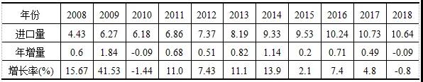 表2 2008~2018年我國鐵礦石進(jìn)口量 單位:萬噸