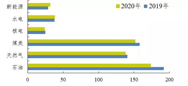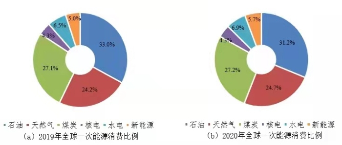圖5  2019和2020年全球一次能源消費(fèi)比例