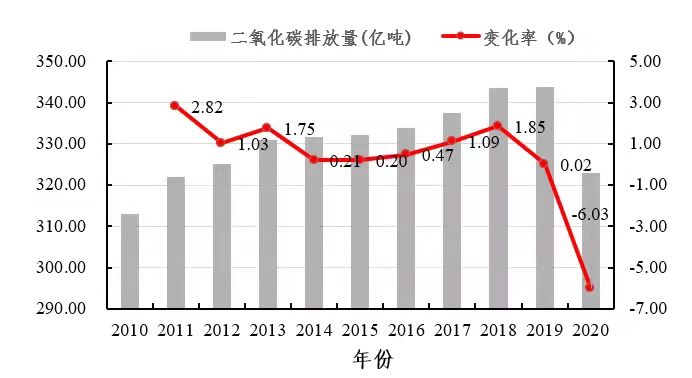 圖8  2010-2020年中國二氧化碳排放量及變化率
