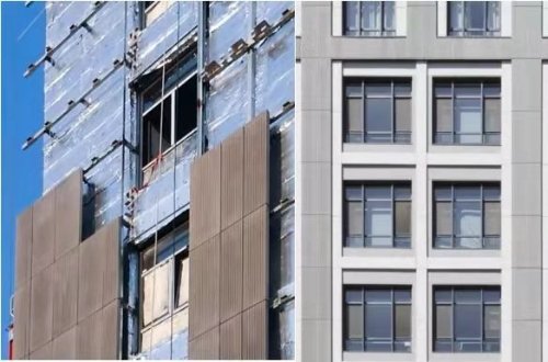 通過(guò)技術(shù)的不斷發(fā)展和革新,同一種外墻掛板材質(zhì),也可以通過(guò)自身機(jī)理和顏色的不同打造豐富而有質(zhì)感的立面效果。ECP板按照表現(xiàn)加工工藝分為清水飾面板、表面涂裝板和基層板材。寬度規(guī)格為500~600mm,生產(chǎn)長(zhǎng)度規(guī)格為5m。ECP裝配式外墻安裝構(gòu)造,內(nèi)墻是ALC墻板,外做巖棉保溫,覆防水透氣膜,空氣層外掛ECP板。面板可以制成不同的肌理效果,并且飾面顏色選擇多樣化。