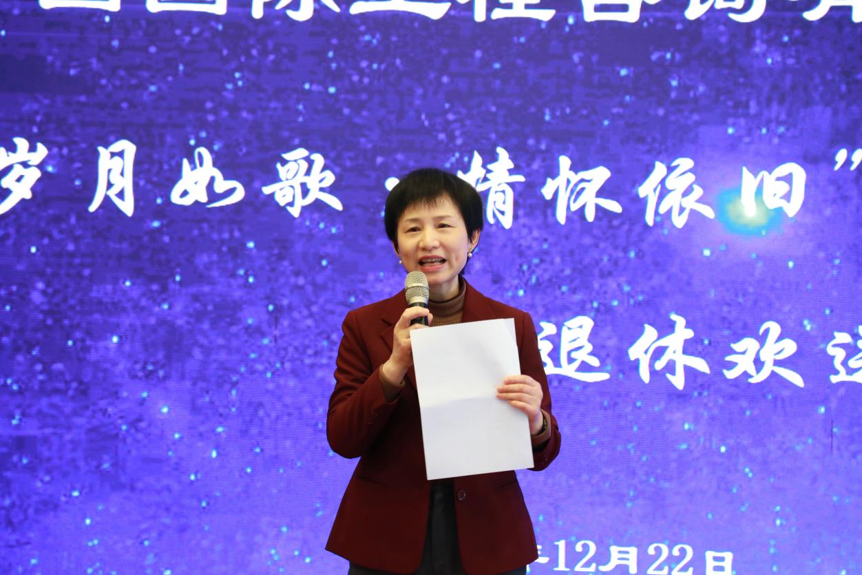 古楓吐艷,晚菊傲霜。2021年12月22日下午,中咨公司為能源業(yè)務(wù)部伍丁蘋、石化輕紡業(yè)務(wù)部吳軍、國(guó)際業(yè)務(wù)部黃忠義三位同志舉辦“歲月如歌,情懷依舊”退休歡送會(huì)。公司黨委副書記、董事牛向春出席歡送會(huì)并代表公司黨委致辭。人力資源部和國(guó)際業(yè)務(wù)部聯(lián)合主辦此次歡送會(huì),黨群工作部、辦公室協(xié)辦。退休同志所在部門負(fù)責(zé)人以及“親友團(tuán)”等近50名同志參加活動(dòng)。國(guó)際業(yè)務(wù)部孫鐵峰、譚苑擔(dān)任嘉賓主持。