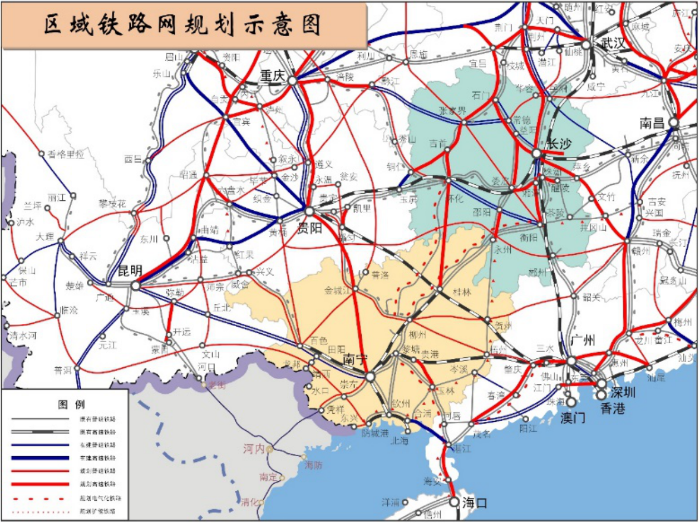 懷桂高鐵北接懷化鐵路樞紐,聯(lián)通既有的滬昆高鐵和正在建設(shè)的張吉懷高鐵,南連桂林、南寧。已于2016列入國家《中長期鐵路網(wǎng)規(guī)劃》規(guī)劃研究項目,也是《國家綜合立體交通網(wǎng)規(guī)劃綱要》二湛通道內(nèi)的遠期規(guī)劃研究項目。懷桂高鐵為張吉懷鐵路南延線和二湛通道的最南端,與滬昆高鐵一起緊密聯(lián)系長株潭城市群、成渝雙城經(jīng)濟圈、關(guān)中平原城市群、長江經(jīng)濟帶、北部灣城市群、粵港澳大灣區(qū),是構(gòu)筑湘、桂、瓊、粵四地區(qū)北上、南下、西進、東出的重要通道,是西部陸海新通道東線的重要組成部分,是西部和華南地區(qū)與東盟連接的重要紐帶,對促進我國中西部地區(qū)內(nèi)外連通、通邊達海具有非常重要的戰(zhàn)略意義。