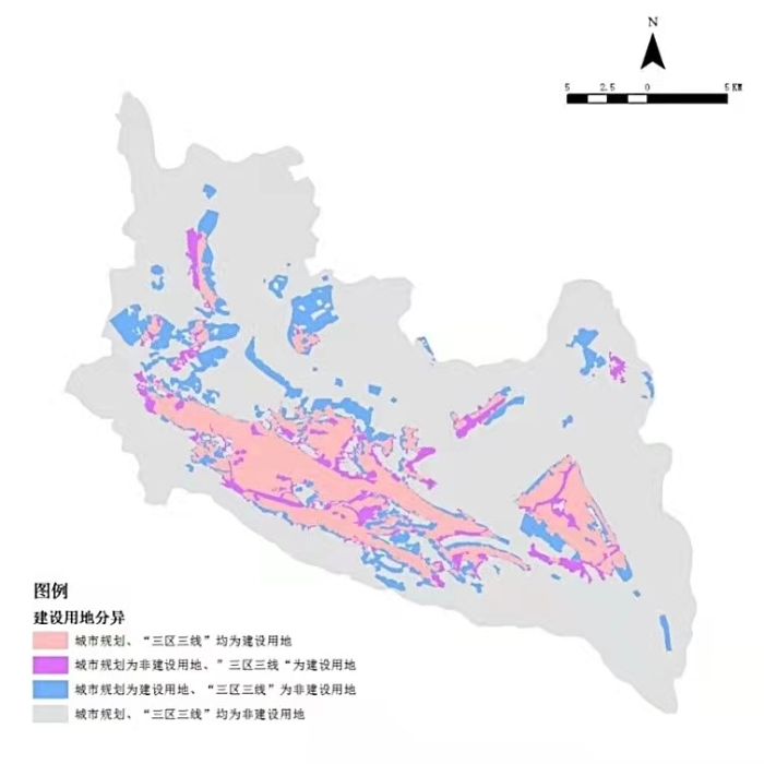 圖3 城市規(guī)劃、國(guó)土空間規(guī)劃建設(shè)用地的疊加分析