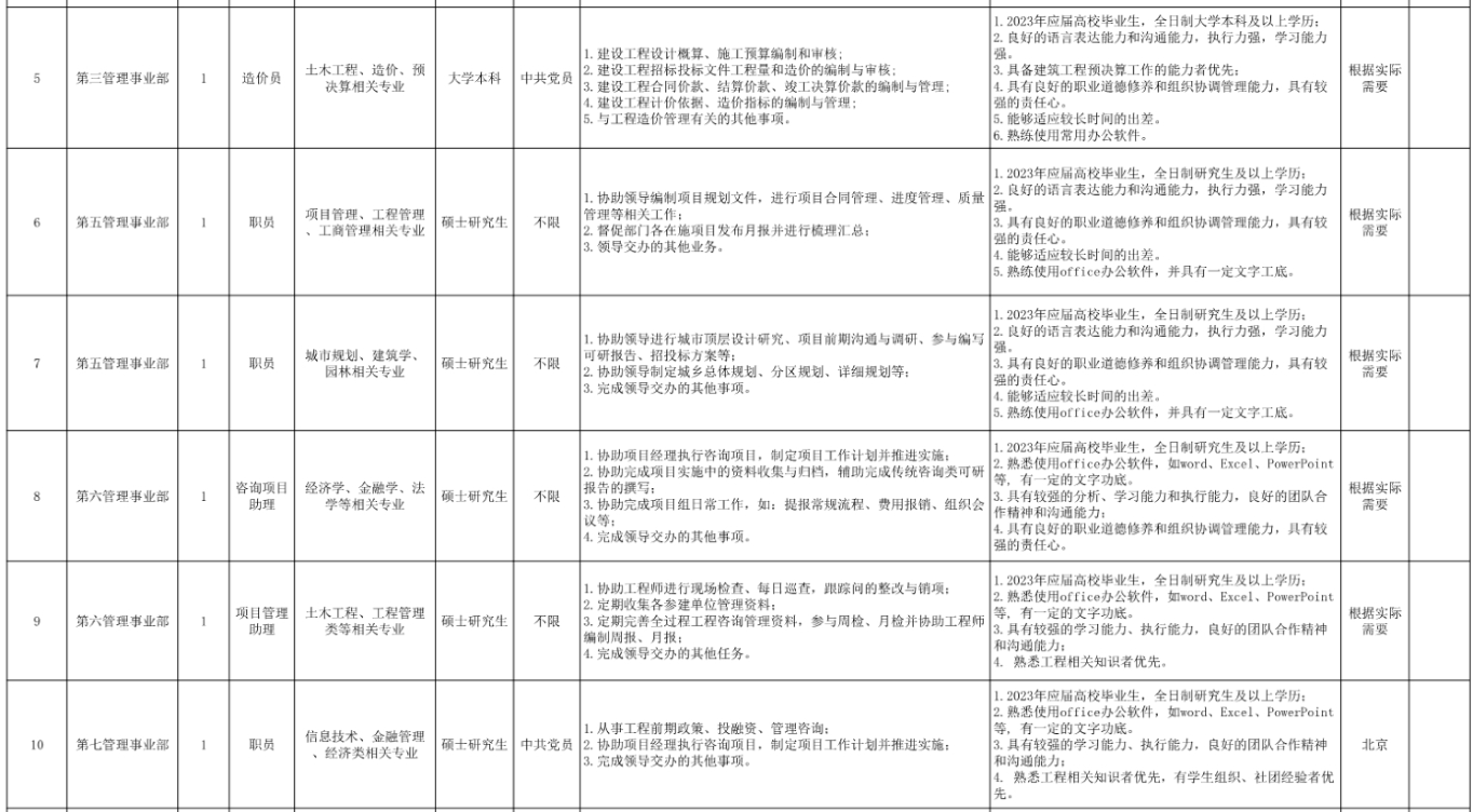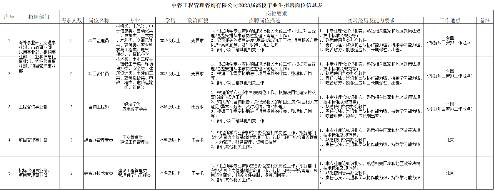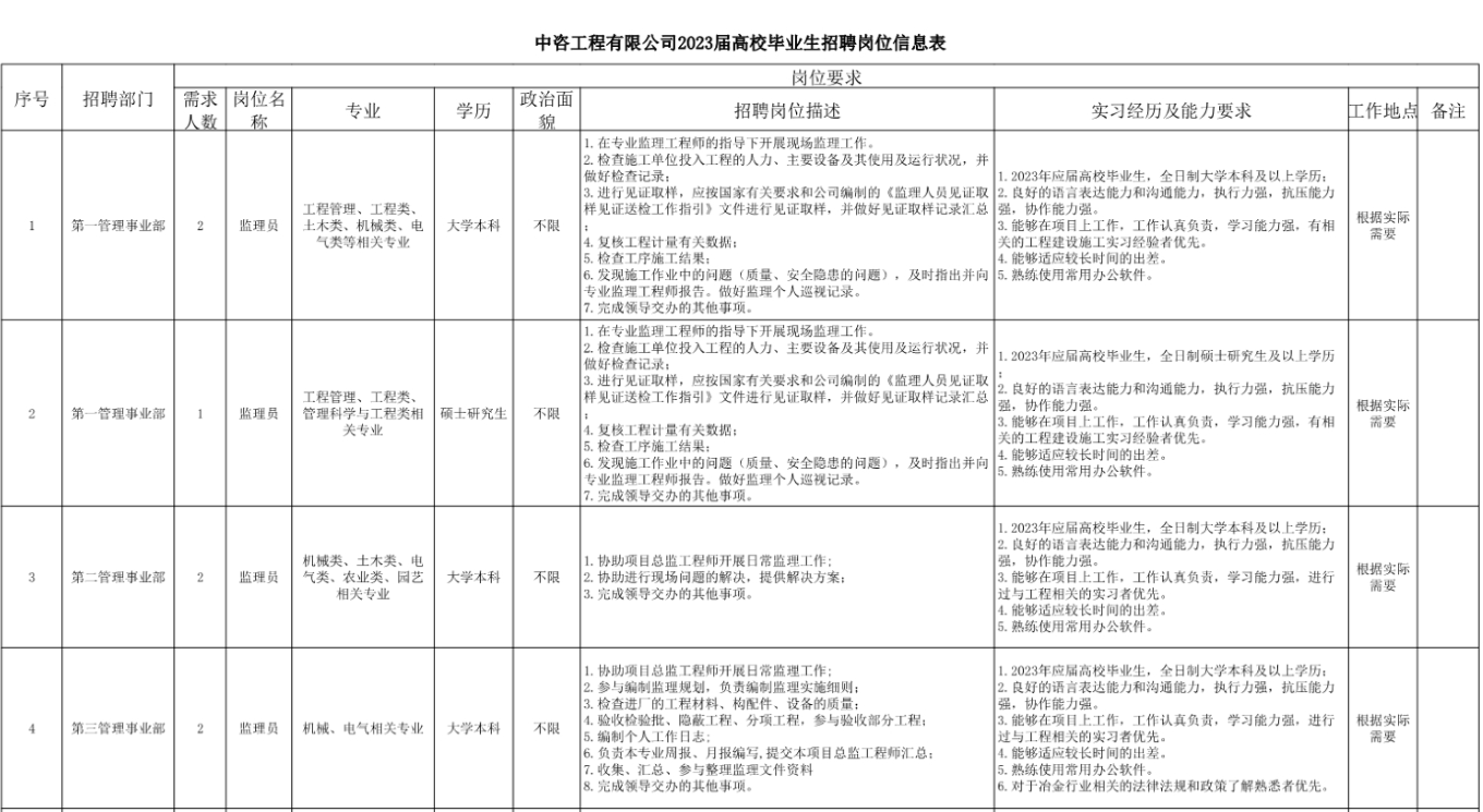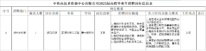 中咨管理公司2023屆高校畢業(yè)生招聘崗位信息表.pdf