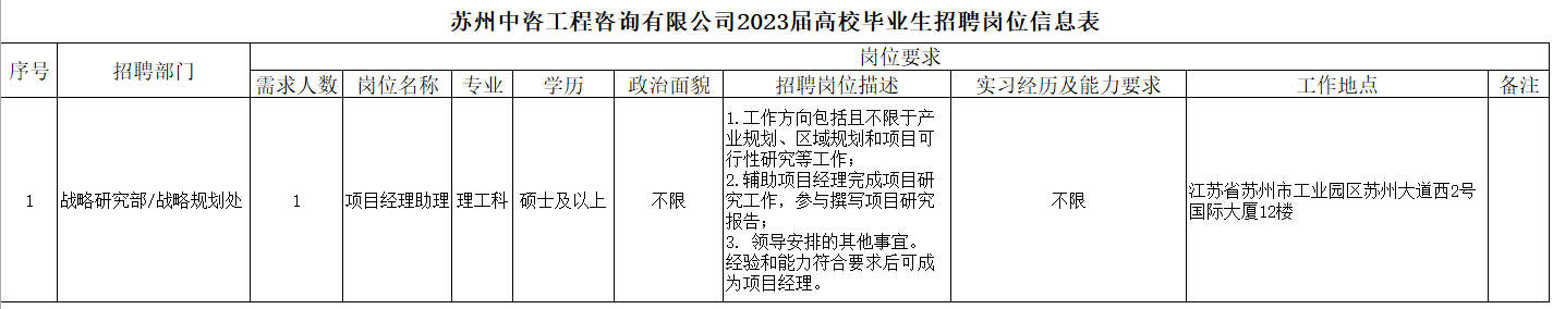 蘇州中咨2023屆高校畢業(yè)生招聘崗位信息表.pdf