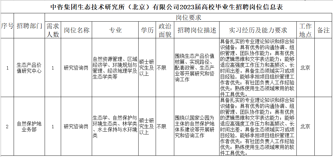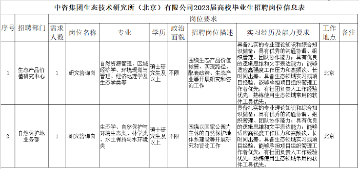 生態(tài)所2023屆高校畢業(yè)生招聘崗位信息表.pdf