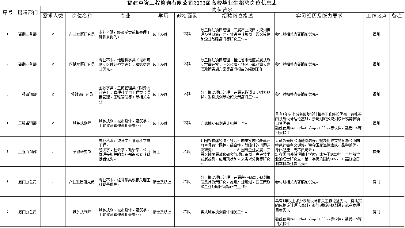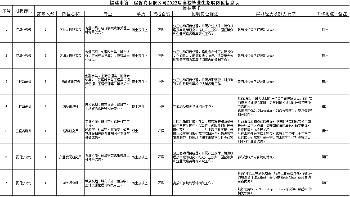 福建中咨公司2023屆高校畢業(yè)生招聘崗位信息表.pdf