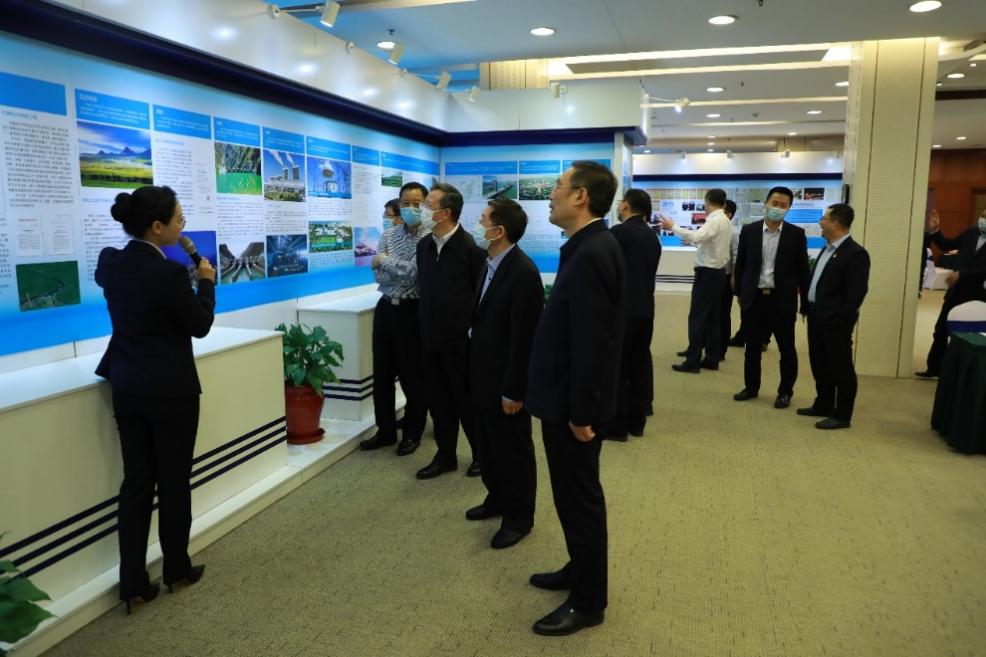 在茍護(hù)生的陪同下,曹建國一行參觀中咨公司智庫展廳,詳細(xì)了解企業(yè)歷史沿革、發(fā)展現(xiàn)狀及重要智庫建設(shè)成果情況。