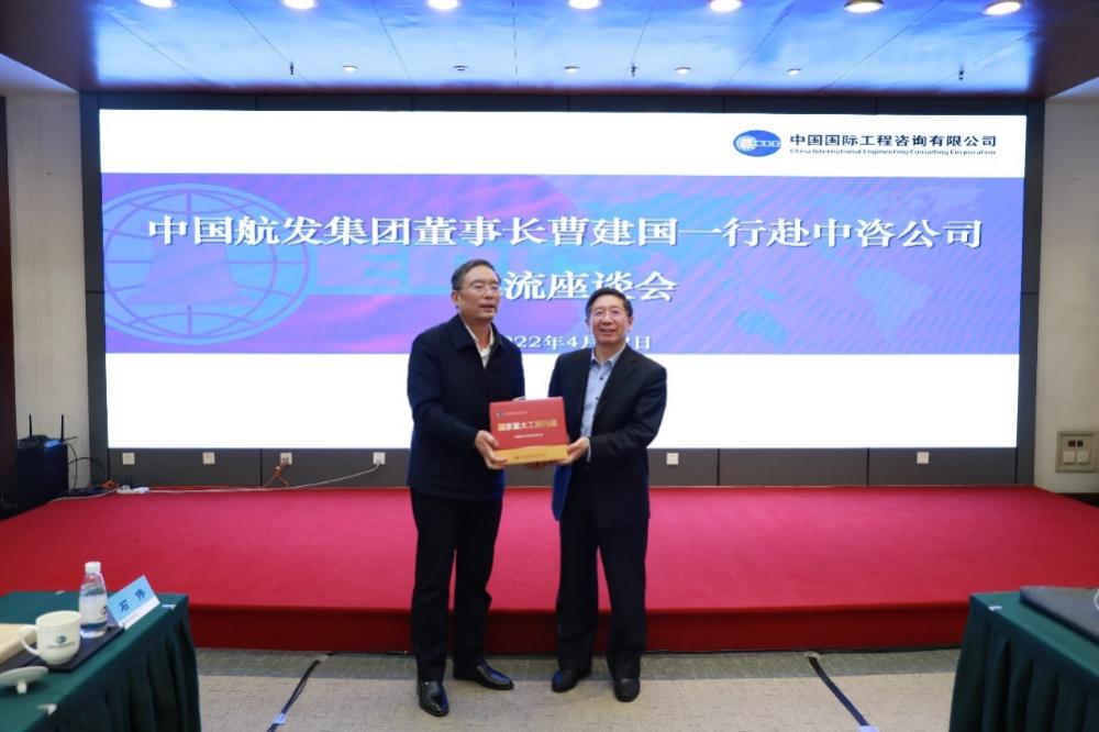 4月22日下午,中咨公司黨委書記、董事長、總經(jīng)理茍護(hù)生接待中國航空發(fā)動(dòng)機(jī)集團(tuán)有限公司(以下簡稱“中國航發(fā)”)黨組書記、董事長曹建國一行并就科技興企、產(chǎn)業(yè)報(bào)國進(jìn)行座談交流。
