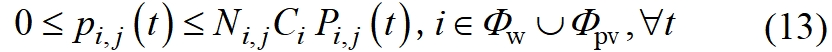 基于分解協(xié)調(diào)的 風(fēng)光儲聯(lián)合規(guī)劃分層優(yōu)化方法 史昭娣 朱寧 陳琦 摘 要:風(fēng)光儲聯(lián)合規(guī)劃可以充分考慮新能源資源特性,所得規(guī)劃結(jié)果在全局角度更科學(xué)。文中計(jì)及中長期時序電力平衡進(jìn)行風(fēng)光儲聯(lián)合規(guī)劃,規(guī)劃結(jié)果更為合理可靠。多區(qū)域風(fēng)光儲聯(lián)合規(guī)劃問題本質(zhì)上是一個廣域多電源、多變量、多時間斷面的高維復(fù)雜隨機(jī)規(guī)劃問題,求解非常耗時,甚至由于維數(shù)災(zāi)難無法求解?;诖?,文中建立多區(qū)域風(fēng)光儲聯(lián)合規(guī)劃模型,并提出基于區(qū)域分解協(xié)調(diào)的分層優(yōu)化算法,將多區(qū)域風(fēng)光儲聯(lián)合規(guī)劃模型分解為兩層問題,其中下層問題確定各子區(qū)域內(nèi)電源和儲能的配置容量;上層問題根據(jù)下層問題給定的容量規(guī)劃方案,確定各子區(qū)域電源運(yùn)行情況。兩層問題相互迭代,協(xié)調(diào)得到各區(qū)域風(fēng)光儲最優(yōu)容量。最后,算例分析驗(yàn)證了所提模型和方法的合理性及有效性。 關(guān)鍵詞:新能源;儲能;電源規(guī)劃;拉格朗日松弛;分解協(xié)調(diào);容量配置 近年來,我國風(fēng)電[1]、光伏[2]等新能源裝機(jī)和發(fā)電量均實(shí)現(xiàn)快速增長[3-4],大規(guī)模新能源接入電網(wǎng)增加了系統(tǒng)應(yīng)對新能源出力變化的靈活性需求,配置儲能是提升新能源電力系統(tǒng)靈活性的重要措施之一。新能源與儲能規(guī)劃可在源頭上維持電力系統(tǒng)供需平衡,為保障系統(tǒng)安全可靠運(yùn)行提供基礎(chǔ)。新能源規(guī)劃和儲能配置都需要計(jì)及系統(tǒng)時序特性。進(jìn)行新能源和儲能聯(lián)合優(yōu)化規(guī)劃有利于充分考慮新能源的出力特性,規(guī)劃結(jié)果更為合理可靠[5]。 針對新能源與儲能聯(lián)合規(guī)劃問題,已有學(xué)者進(jìn)行了相關(guān)研究。文獻(xiàn)[6]基于碳減排目標(biāo)建立了新能源和儲能規(guī)劃模型;文獻(xiàn)[7]基于新能源多階段規(guī)劃模型得到不同新能源配額場景下的儲能規(guī)劃方案;文獻(xiàn)[8-10]提出一種考慮新能源出力不確定性的風(fēng)光儲微電網(wǎng)儲能容量聯(lián)合優(yōu)化方法;文獻(xiàn)[11-12]基于典型日方法建立了微電網(wǎng)風(fēng)光儲雙層規(guī)劃模型;文獻(xiàn)[13]提出源-荷匹配的風(fēng)光儲容量配比優(yōu)化方法。以上研究表明了進(jìn)行新能源與儲能聯(lián)合規(guī)劃是高比例新能源電力系統(tǒng)經(jīng)濟(jì)、可靠發(fā)展的重要基礎(chǔ),但通常都是基于某一區(qū)域或系統(tǒng)進(jìn)行新能源與儲能規(guī)劃,對多區(qū)域新能源與儲能聯(lián)合規(guī)劃考慮較少。 新能源與儲能聯(lián)合規(guī)劃模型為典型的混合整數(shù)規(guī)劃(mixed integer programming,MIP)模型[14],具有高維數(shù)的特點(diǎn)[15-17],這類模型通常難以直接用于大區(qū)域復(fù)雜電網(wǎng)的中長期規(guī)劃研究。因此,亟須從減小源儲聯(lián)合規(guī)劃MIP模型規(guī)模方面來降低模型的求解難度。一些學(xué)者采用人工智能算法進(jìn)行規(guī)劃模型的尋優(yōu)求解。文獻(xiàn)[18]建立基于差異進(jìn)化算法的新能源規(guī)劃模型;文獻(xiàn)[19]提出基于神經(jīng)網(wǎng)絡(luò)算法的新能源電力系統(tǒng)容量優(yōu)化規(guī)劃方法;文獻(xiàn)[20]基于多準(zhǔn)則決策分析方法得到不同條件下的風(fēng)光儲容量配置比例。這些算法在一定程度上取得較好效果,但存在過于依賴初始值和尋優(yōu)路徑、局部搜索能力弱、在局部極值附近早熟收斂等問題。 新能源與儲能聯(lián)合規(guī)劃通常將MIP模型轉(zhuǎn)換為混合整數(shù)線性規(guī)劃(mixed integer linear programming,MILP)模型以便于求解。針對MILP模型,現(xiàn)階段多采用分支定界法[21]或割平面法[22]求解,然而這些方法仍需要較長計(jì)算時間[23]。分解協(xié)調(diào)技術(shù)[24]被廣泛用于提高M(jìn)IP問題的求解速度,基于拉格朗日松弛的分解法[25]是一種目前常用的分解協(xié)調(diào)技術(shù),適用于目標(biāo)函數(shù)中包含多決策變量的優(yōu)化問題求解。 基于以上分析,文中對多區(qū)域風(fēng)光儲聯(lián)合優(yōu)化規(guī)劃問題進(jìn)行研究。首先,考慮新能源出力隨機(jī)性,建立基于中長期時序電力平衡的多區(qū)域風(fēng)光儲聯(lián)合規(guī)劃模型。其次,提出基于區(qū)域分解協(xié)調(diào)的分層優(yōu)化方法,將多區(qū)域風(fēng)光儲聯(lián)合規(guī)劃模型分解為兩層問題,其中下層問題以最小化綜合成本為目標(biāo),確定各子區(qū)域內(nèi)電源和儲能的配置容量;上層問題根據(jù)下層問題給定的容量規(guī)劃方案,求解新能源消納最大化問題,確定各子區(qū)域電源運(yùn)行情況。兩層問題相互迭代,協(xié)調(diào)得到各區(qū)域風(fēng)光儲最優(yōu)容量。最后,算例分析驗(yàn)證了所提模型和方法的合理性及有效性。 一、多區(qū)域風(fēng)光儲聯(lián)合優(yōu)化規(guī)劃數(shù)學(xué)模型 (一)目標(biāo)函數(shù) 電源規(guī)劃的主要任務(wù)是在滿足負(fù)荷需求和各種技術(shù)經(jīng)濟(jì)指標(biāo)條件下確定電源類型和規(guī)模,使規(guī)劃期內(nèi)系統(tǒng)能可靠供電且