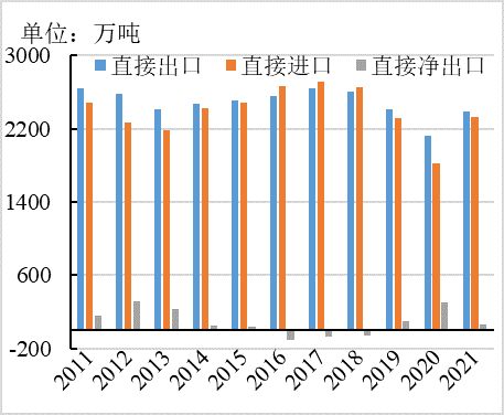 德國既是鋼鐵出口大國,也是進口大國,鋼鐵產(chǎn)品進口量和出口量基本相當。鋼鐵產(chǎn)品出口量占德國鋼鐵總產(chǎn)量的50%以上。2021年,德國鋼鐵產(chǎn)品出口量約2390萬噸,占產(chǎn)量的59.6%;進口量約2330萬噸。歐盟內(nèi)國家是德國主要的鋼鐵貿(mào)易方,出口量約占總出口量的75%,進口量約占總進口量的85%。