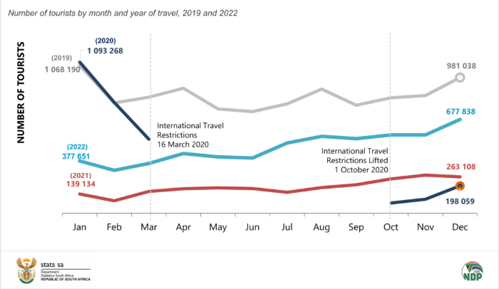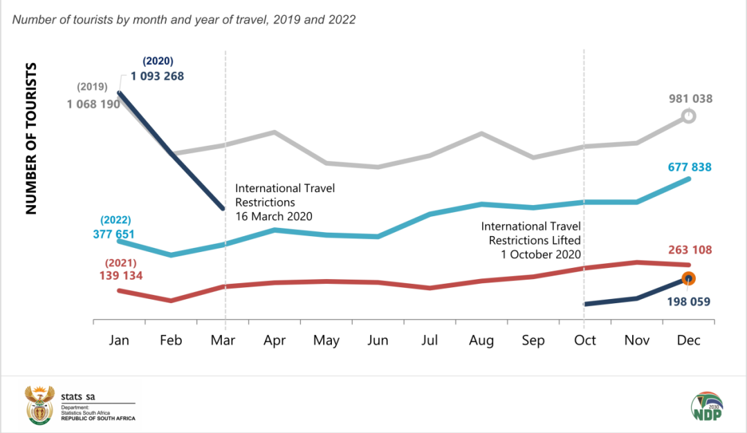 圖1 南非共和國2019~2022年月度游客量統(tǒng)計(jì)變化 來源:南非統(tǒng)計(jì)局
