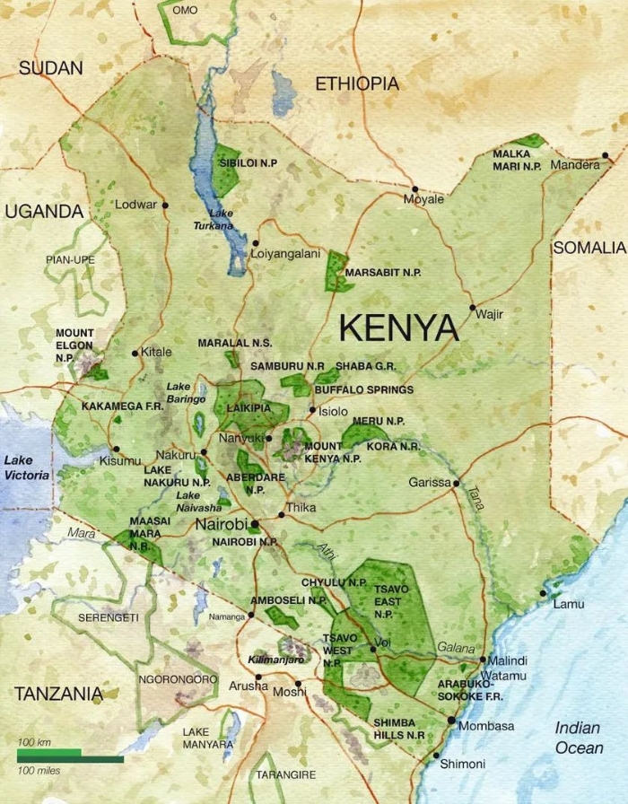 圖6 肯尼亞國家公園分布示意圖(Kenya National Parks & Game Reserves)  來源:https://www.mapsland.com/africa/kenya/detailed-national-parks-map-of-kenya