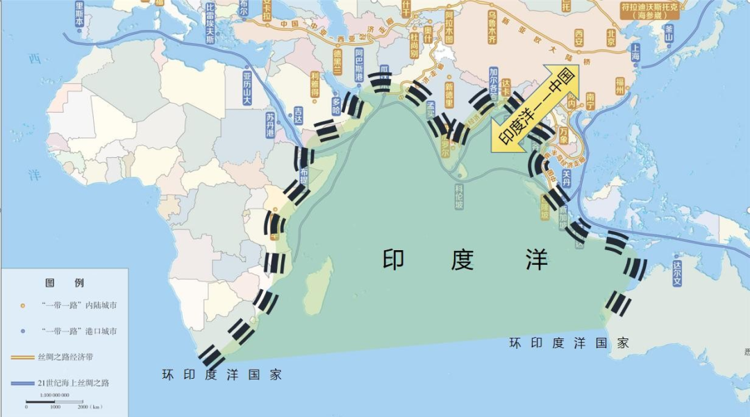 近年來(lái),隨著國(guó)際局勢(shì)的變化,印度洋在全球戰(zhàn)略地位日趨上升。印度洋作為中國(guó)的西部鄰海,是中國(guó)通向南亞、中東、西亞和歐洲、非洲、大洋洲重要的通道,對(duì)中國(guó)的經(jīng)濟(jì)可持續(xù)發(fā)展至關(guān)重要。環(huán)印度洋地區(qū)地跨亞洲、非洲和大洋洲,包含南亞、東南亞、非洲和中東板塊,面積約 2772.3萬(wàn)平方千米(占世界陸地總面積的20.6%),環(huán)印度洋地區(qū)合作聯(lián)盟共有23個(gè)成員國(guó)、10個(gè)對(duì)話伙伴國(guó)和2個(gè)觀察員國(guó),人口近25.2億(約占世界總?cè)丝诘?5%)。該地區(qū)擁有豐富的自然和人力資源、廣闊的市場(chǎng)和便利的交通,發(fā)展?jié)摿薮蟆?/span>