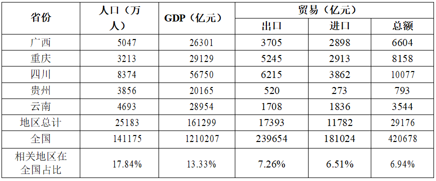 表2 西南國(guó)際大通道貫通相關(guān)地區(qū)2022年主要經(jīng)濟(jì)指標(biāo)