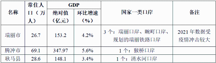 二是支持政策富集。瑞麗擁有瑞麗國(guó)家重點(diǎn)開發(fā)開放試驗(yàn)區(qū)、中國(guó)(云南)自由貿(mào)易試驗(yàn)區(qū)德宏片區(qū)、中國(guó)(德宏)跨境電商綜合試驗(yàn)區(qū)、德宏(瑞麗)陸上邊境口岸型國(guó)家物流樞紐、瑞麗邊境經(jīng)濟(jì)合作區(qū)、姐告境內(nèi)關(guān)外邊境貿(mào)易區(qū)等國(guó)家級(jí)沿邊開發(fā)開放政策平臺(tái)。