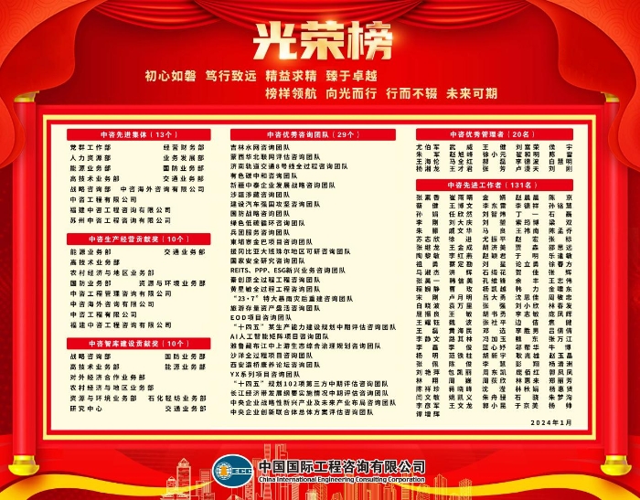 闊步新征程,昂首向未來。1月30日,中咨公司召開2024年度工作會(huì)議。會(huì)議的主要任務(wù)是,以習(xí)近平新時(shí)代中國特色社會(huì)主義思想為指導(dǎo),全面貫徹黨的二十大、二十屆二中全會(huì)精神和二十屆中央紀(jì)委三次全會(huì)精神,落實(shí)中央經(jīng)濟(jì)工作會(huì)議部署和中央企業(yè)負(fù)責(zé)人會(huì)議要求,全面總結(jié)公司2023年工作,聚焦新時(shí)代新征程面臨的新形勢(shì)新任務(wù),謀劃下一階段落實(shí)好“五五戰(zhàn)略”的具體路徑,部署2024年重點(diǎn)任務(wù),推動(dòng)公司高質(zhì)量發(fā)展再創(chuàng)新局面。 公司黨委書記、董事長、總經(jīng)理茍護(hù)生作《扎實(shí)推動(dòng)“五五戰(zhàn)略”落地生根 奮力開創(chuàng)公司高質(zhì)量發(fā)展新局面》主題報(bào)告。黨委委員、總會(huì)計(jì)師王麗靜主持會(huì)議。黨委委員、中咨戰(zhàn)略研究院執(zhí)行院長竇皓宣讀《公司黨委關(guān)于表彰2023年度先進(jìn)集體和先進(jìn)個(gè)人的決定》。黨委委員、副總經(jīng)理潘小海傳達(dá)中央經(jīng)濟(jì)工作會(huì)議、中央企業(yè)負(fù)責(zé)人會(huì)議、全國發(fā)展和改革工作會(huì)議精神。黨委委員、副總經(jīng)理沈浩傳達(dá)國務(wù)院國資委黨風(fēng)廉政建設(shè)和反腐敗工作會(huì)議精神。國家審計(jì)署企業(yè)審計(jì)八局有關(guān)同志以及公司外部董事楊愛民、余德輝出席會(huì)議。會(huì)議期間還表彰了2023年度先進(jìn)集體和個(gè)人以及簽訂2024年度經(jīng)營考核責(zé)任書。 會(huì)議指出,2023年,公司深入開展習(xí)近平新時(shí)代中國特色社會(huì)主義思想主題教育,堅(jiān)定不移落實(shí)“五五戰(zhàn)略”,加快建設(shè)國家高端智庫和世界一流咨詢機(jī)構(gòu),在服務(wù)中央科學(xué)決策和國家重大戰(zhàn)略方面做出突出貢獻(xiàn),核心功能和核心競爭力更加凸顯,圓滿完成國資委各項(xiàng)考核指標(biāo)。公司咨詢服務(wù)工作得到委托方高度認(rèn)可,收到中央部委、地方政府、大型企事業(yè)單位等各方感謝信240封,100多名個(gè)人和團(tuán)隊(duì)受到表揚(yáng)。公司榮獲菲迪克“卓越工程項(xiàng)目獎(jiǎng)”“優(yōu)秀工程項(xiàng)目獎(jiǎng)”各1項(xiàng)、魯班獎(jiǎng)4項(xiàng)、國家優(yōu)質(zhì)工程獎(jiǎng)9項(xiàng),獲得“2023年度誠信經(jīng)營守信踐諾標(biāo)桿企業(yè)”榮譽(yù)稱號(hào)。 會(huì)議從九個(gè)方面系統(tǒng)回顧過去一年的主要業(yè)績。智庫建設(shè)勇攀高峰,上報(bào)決策咨詢成果數(shù)量、質(zhì)量雙雙再創(chuàng)歷史新高;服務(wù)國家戰(zhàn)略做出新貢獻(xiàn),在服務(wù)國家重大戰(zhàn)略規(guī)劃評(píng)估、國家重大工程建設(shè)、高水平支撐現(xiàn)代化產(chǎn)業(yè)體系建設(shè)和科技自立自強(qiáng)、踐行綠色發(fā)展理念、助力“一帶一路”行穩(wěn)致遠(yuǎn)、保障國防軍工建設(shè)、服務(wù)國資央企高質(zhì)量發(fā)展等方面展現(xiàn)擔(dān)當(dāng)作為;生產(chǎn)經(jīng)營逆勢(shì)上揚(yáng),“一利”穩(wěn)定增長,“五率”持續(xù)優(yōu)化;業(yè)務(wù)結(jié)構(gòu)持續(xù)優(yōu)化,新興業(yè)務(wù)穩(wěn)步增長,總部部門與所屬企業(yè)協(xié)同效應(yīng)更加突出,“6+1”全過程咨詢產(chǎn)業(yè)鏈條進(jìn)一步完善;深化改革實(shí)現(xiàn)新突破,形成新時(shí)期推動(dòng)公司高質(zhì)量發(fā)展的“五五戰(zhàn)略”,新一輪改革深化提升行動(dòng)高質(zhì)量起步,董事會(huì)運(yùn)行更加規(guī)范、作用更加突出;建設(shè)世界一流咨詢機(jī)構(gòu)邁出堅(jiān)實(shí)步伐,在對(duì)標(biāo)世界一流價(jià)值創(chuàng)造、豐富資質(zhì)體系、品牌引領(lǐng)、區(qū)域化布局、數(shù)字化運(yùn)營、標(biāo)準(zhǔn)化建設(shè)、財(cái)務(wù)信息化、干部選任、專家隊(duì)伍建設(shè)、智庫成果發(fā)布等方面取得新成效;風(fēng)險(xiǎn)內(nèi)控工作持續(xù)加強(qiáng),推進(jìn)審計(jì)全覆蓋,健全合規(guī)管理體系,安全生產(chǎn)形勢(shì)總體穩(wěn)定;黨的建設(shè)開創(chuàng)新局面,在主題教育中一體推進(jìn)理論學(xué)習(xí)、調(diào)查研究、推動(dòng)發(fā)展、檢視整改,宣傳思想、工會(huì)、統(tǒng)戰(zhàn)、團(tuán)青等各項(xiàng)工作邁上新臺(tái)階;全面從嚴(yán)治黨縱深推進(jìn),突出政治監(jiān)督,做實(shí)日常監(jiān)督,加強(qiáng)作風(fēng)建設(shè),開展紀(jì)檢干部隊(duì)伍教育整頓和巡查式、回訪式、機(jī)動(dòng)式巡視,黨風(fēng)廉政建設(shè)和反腐敗工作走深走實(shí)。公司各項(xiàng)工作全面推進(jìn),呈現(xiàn)穩(wěn)中求進(jìn)、進(jìn)中向好的發(fā)展態(tài)勢(shì)。 茍護(hù)生表示,在經(jīng)濟(jì)下行壓力大、改革發(fā)展任務(wù)重、矛盾風(fēng)險(xiǎn)挑戰(zhàn)多的背景下,公司取得發(fā)展成績殊為不易,根本在于以習(xí)近平同志為核心的黨中央堅(jiān)強(qiáng)領(lǐng)導(dǎo),是國務(wù)院的信任和各部委大力支持、國資委直接指導(dǎo)的結(jié)果,是全體干部職工團(tuán)結(jié)拼搏的結(jié)果。新的一年要延續(xù)良好勢(shì)頭,就要深入研判當(dāng)前形勢(shì),科學(xué)謀劃下步工作。總體而言,機