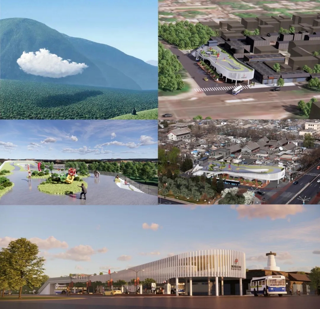 設(shè)計(jì)方法上,提出“城門邊一片云”的設(shè)計(jì)理念,將“輕”介入方式具象化,在既有公交場(chǎng)站的上方,通過(guò)底層立柱,架空增建出云朵流線型平面的屋頂開(kāi)放活動(dòng)平臺(tái),平臺(tái)的南側(cè)局部拓展了部分二層作為公共空間。簡(jiǎn)潔的形體既體現(xiàn)浮云漂浮靈動(dòng)、飄逸輕盈的物理性,同時(shí)也呼應(yīng)了輕介入的理念;不同標(biāo)高的屋面通過(guò)平緩的坡道連接整合一體,人流可以通過(guò)北側(cè)階梯式看臺(tái)拾級(jí)而上,再流入二層平臺(tái)。作為曾經(jīng)的北平“九門”之一及二環(huán)城墻所在地,坡道、階梯的登臺(tái)方式,既呼應(yīng) “城墻”“馬道”的歷史,也讓游客觀者在登臺(tái)行動(dòng)中獲得今昔不同時(shí)空下,“登城門樓,觀風(fēng)云處”的直觀感受,用現(xiàn)代的方式延續(xù)城墻文脈,串聯(lián)起南、北兩側(cè)的二環(huán)文化景觀環(huán)線。