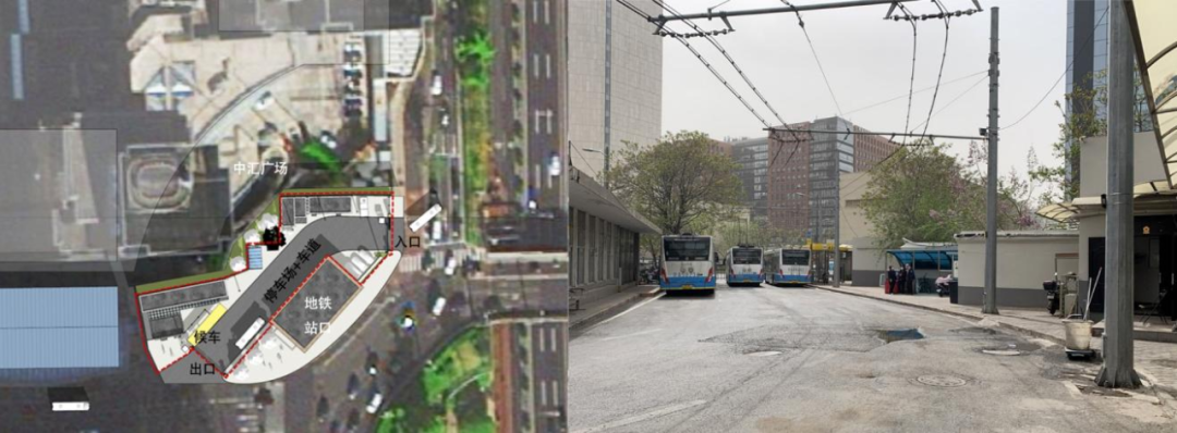 圖4 東城試點(diǎn)場(chǎng)站區(qū)位及現(xiàn)狀