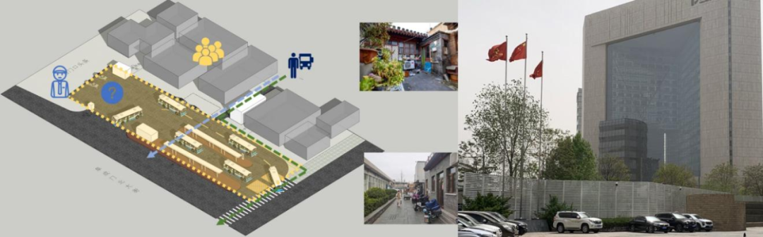 由于位于古都風(fēng)貌保護(hù)區(qū)內(nèi),西城試點(diǎn)場(chǎng)站針對(duì)用地周邊歷史街區(qū)以平房、胡同為主的空間肌理與城市特點(diǎn),基于尊重傳統(tǒng)格局及歷史風(fēng)貌的原則,希望通過(guò)“針灸式”的輕改造活動(dòng),來(lái)平衡和消化公交場(chǎng)站和傳統(tǒng)歷史街區(qū)場(chǎng)所感上的距離。這樣既最大程度減少對(duì)歷史街區(qū)的擾動(dòng),同時(shí)也保留了原來(lái)公交場(chǎng)站地職能,將提質(zhì)更新的效益最大化。