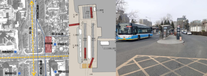 地處西二環(huán)東側(cè)古都風(fēng)貌保護(hù)區(qū)內(nèi)的西城試點(diǎn)場(chǎng)站,是所在街道的西南門戶,東側(cè)為歷史文化街區(qū),附近有多處文物保護(hù)單位、歷史建筑及傳統(tǒng)風(fēng)貌建筑群。附近是地鐵站出口。