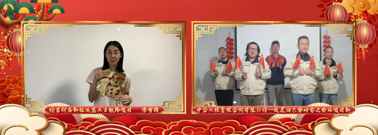 天涯咫尺,息息相通。公司駐海外員工代表——經(jīng)營(yíng)財(cái)務(wù)部譚增輝、中咨管理公司援尼泊爾梯姆雷邊檢站項(xiàng)目部、中咨工程公司烏茲別克斯坦奧林匹克體育城項(xiàng)目部特別錄制了拜年歌曲,遙寄祝福、共迎新春。