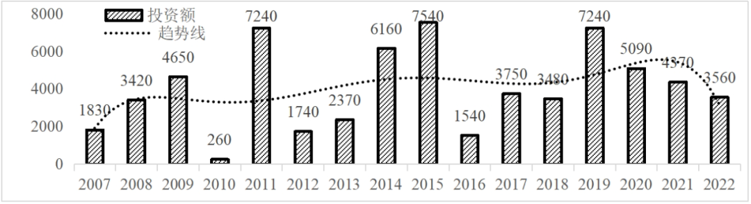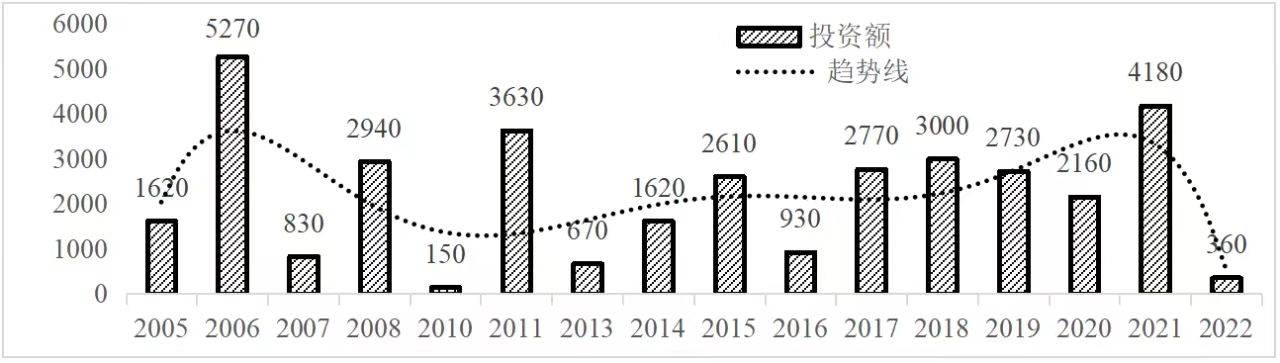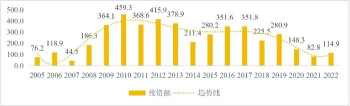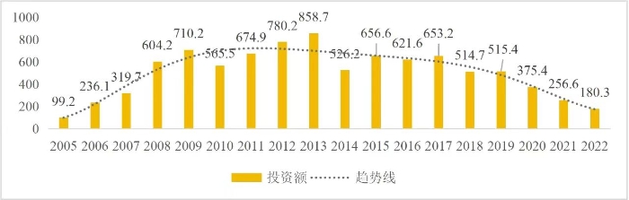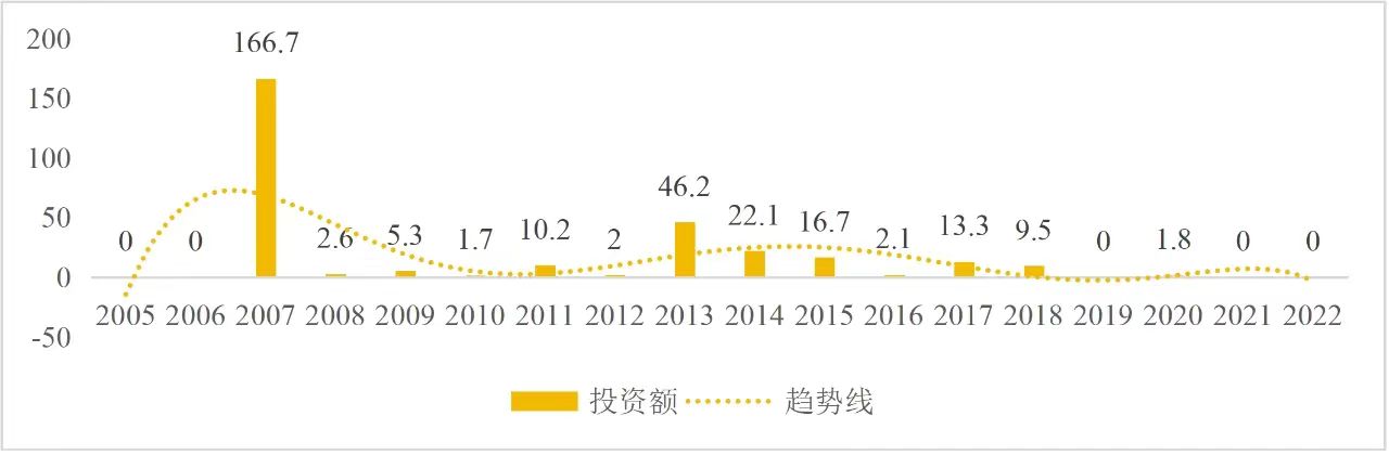 企業(yè)境外投資研究之二: 中央企業(yè)境外投資情況 楊凱越 編者按:根據(jù)商務(wù)部2023年10月發(fā)布的我國(guó)對(duì)外直接投資統(tǒng)計(jì)數(shù)據(jù),截至2022年,我國(guó)對(duì)外直接投資存量達(dá)27548.1億美元,當(dāng)年對(duì)外直接投資規(guī)模達(dá)1631.2億美元,居世界第二位。截至2022年底,中國(guó)2.9萬(wàn)家境內(nèi)投資者共設(shè)立境外企業(yè)4.66萬(wàn)家,分布在全球190個(gè)國(guó)家(地區(qū)),年末境外企業(yè)資產(chǎn)總額8.4萬(wàn)億美元。隨著“雙循環(huán)”戰(zhàn)略、“走出去”戰(zhàn)略和“一帶一路”倡議的深入推進(jìn)實(shí)施,對(duì)企業(yè)境外投資開(kāi)展系統(tǒng)研究,探索如何更高質(zhì)量地開(kāi)展境外投資,成為當(dāng)前一項(xiàng)重要和緊迫的任務(wù)。本公眾號(hào)將企業(yè)境外投資研究成果以系列文章的形式陸續(xù)刊發(fā),本文是研究報(bào)告的第二部分,供業(yè)界同仁參考。 一、總體情況 中央企業(yè)2013-2019年境外投資年均增速約15%,營(yíng)業(yè)收入增速保持在約4.5%。根據(jù)國(guó)務(wù)院國(guó)資委和社科院聯(lián)合發(fā)布的《中央企業(yè)海外社會(huì)責(zé)任藍(lán)皮書(shū)(2020)》,中央企業(yè)在境外投資發(fā)展時(shí),7%投資第一產(chǎn)業(yè),69%參與第二產(chǎn)業(yè),40%發(fā)展第三產(chǎn)業(yè)。截至2019年底,中央企業(yè)境外資產(chǎn)總額8.1萬(wàn)億元、所有者權(quán)益2.3萬(wàn)億元。其中,81家中央企業(yè)在“一帶一路”沿線承擔(dān)項(xiàng)目數(shù)量逾3400個(gè)。中央企業(yè)承擔(dān)“一帶一路”基礎(chǔ)設(shè)施項(xiàng)目數(shù)比率超過(guò)60%,合同投資額超過(guò)80%。 近年來(lái),中央企業(yè)境外投資及運(yùn)營(yíng)總體仍呈現(xiàn)較為平穩(wěn)的態(tài)勢(shì)。中央企業(yè)2013-2020年境外營(yíng)業(yè)收入總規(guī)模逾24萬(wàn)億元,利潤(rùn)總規(guī)模約6000億元。2021年,中央企業(yè)和單位對(duì)外非金融類(lèi)直接投資642.9億美元,占我國(guó)對(duì)外直接投資比重約36.0%,同比增長(zhǎng)30.7%,逾60%來(lái)自收益再投資。根據(jù)國(guó)務(wù)院國(guó)資委《中央企業(yè)海外發(fā)展報(bào)告(2023)》,截至2022年底,中央企業(yè)境外投資機(jī)構(gòu)和項(xiàng)目逾8000個(gè),境外員工125萬(wàn)人,境外資產(chǎn)總額近8萬(wàn)億元(比2019年略有下降),當(dāng)年境外投資規(guī)模3739億元。 表1 中央企業(yè)境外投資規(guī)模 單位:億美元 數(shù)據(jù)來(lái)源:商務(wù)部2016-2021年度中國(guó)對(duì)外直接投資統(tǒng)計(jì)公報(bào)。 本文根據(jù)中國(guó)全球投資追蹤(China Global Investment Tracker,CGIT)數(shù)據(jù)庫(kù),按照國(guó)務(wù)院國(guó)資委2023年中央企業(yè)名錄,對(duì)我國(guó)中央企業(yè)境外投資情況進(jìn)行了整理。因數(shù)據(jù)口徑不同,中央企業(yè)境外投資規(guī)模與前述商務(wù)部統(tǒng)計(jì)數(shù)據(jù)有所差異。根據(jù)CGIT數(shù)據(jù),中央企業(yè)境外投資在2013年達(dá)到峰值858.7億美元,此后呈下降趨勢(shì),2022年境外投資規(guī)模僅180.3億美元。 數(shù)據(jù)來(lái)源:CGIT數(shù)據(jù)庫(kù),作者整理。 圖1 2005-2022年中央企業(yè)境外投資規(guī)模 單位:億美元 根據(jù)CGIT數(shù)據(jù)庫(kù),中央企業(yè)2005-2022年各行業(yè)境外投資情況見(jiàn)圖2。其中,能源類(lèi)境外投資規(guī)模最高,為4460.1億美元;建筑工程類(lèi)(包括鐵路、公路等交通基礎(chǔ)設(shè)施建設(shè)類(lèi))境外投資規(guī)模其次,為1534億美元;金屬類(lèi)(含礦產(chǎn))境外投資排名第三為972.5億美元;公用事業(yè)類(lèi)境外投資規(guī)模第四,為702.5億美元;此外,中央企業(yè)境外投資涉及領(lǐng)域還包括旅游、健康、金融、科技、農(nóng)業(yè)、化工、物流、娛樂(lè)等。2018-2022年各行業(yè)境外投資情況見(jiàn)圖3。 數(shù)據(jù)來(lái)源:CGIT數(shù)據(jù)庫(kù),作者整理。 圖2 2005-2022年中央企業(yè)分行業(yè)境外投資規(guī)模 單位:億美元 數(shù)據(jù)來(lái)源:CGIT數(shù)據(jù)庫(kù),作者整理。 圖3 2018-2022年中央企業(yè)分行業(yè)境外投資規(guī)模 單位:百萬(wàn)美元 二、分行業(yè)情況 本文對(duì)2005年1月-2022年12月我國(guó)中央企業(yè)境外投資選取能源行業(yè)、建筑工程行業(yè)、金屬行業(yè)、公用事業(yè)、旅游業(yè)等投資規(guī)模位居前列的行業(yè),分行業(yè)情況進(jìn)行了整理。 (一)能源行業(yè) 2005-2022年中央企業(yè)能源行業(yè)境外投資情況見(jiàn)圖4。分析發(fā)現(xiàn),我國(guó)中央企業(yè)能源行業(yè)境外投資在2010年達(dá)到峰值后呈逐年下降的趨勢(shì)。 數(shù)據(jù)來(lái)源:CGIT數(shù)據(jù)庫(kù),作者整理。 圖4 能源行業(yè)2005-2022年中央企業(yè)境外投資規(guī)模 單位:億美元 (二)建筑工程行業(yè) 2005-2022年中央企業(yè)建筑工程行業(yè)境外投資情況見(jiàn)圖5。分析發(fā)現(xiàn),建筑工程行業(yè)境外投資在2009年達(dá)到峰值,此后呈逐年下降。 數(shù)據(jù)來(lái)源:CGIT數(shù)據(jù)庫(kù),作者整理。 圖5 建筑工程行業(yè)2005-2022年中央企業(yè)境外投資規(guī)模 單位:億美元 (三)金屬行業(yè) 2005-2022年中央企業(yè)金屬行業(yè)境外投資情況見(jiàn)圖6