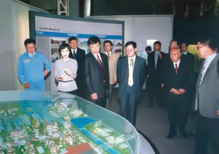 原中央統(tǒng)戰(zhàn)部副部長徐樂江(左四)和石啟榮同志在韓國浦項(xiàng)參觀