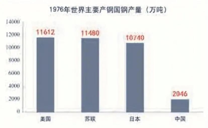 當(dāng)時全國鋼產(chǎn)量僅有2100萬t,生產(chǎn)技術(shù)落后,無法滿足社會主義現(xiàn)代化建設(shè)的需要,技術(shù)含量高、附加值高的鋼材基本全部依賴進(jìn)口。