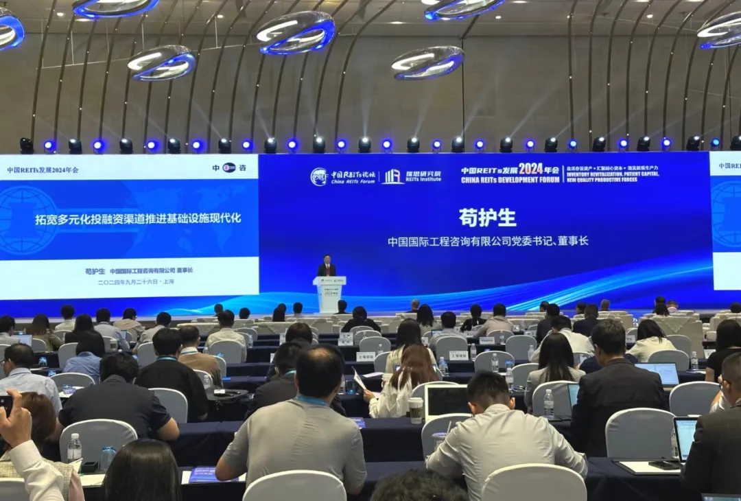 2024年9月26日,中咨公司作為支持單位之一,在上海市委金融辦、上海市發(fā)展改革委的指導(dǎo)下,會同瑞思不動產(chǎn)金融研究院、上海城投、中國建設(shè)銀行、中國房地產(chǎn)業(yè)協(xié)會、北京大學(xué)國家金融研究中心,在上海陸家嘴聯(lián)合舉辦“中國REITs發(fā)展2024年會”。中咨公司黨委書記、董事長茍護生作題為“拓寬多元化投融資渠道 推進基礎(chǔ)設(shè)施現(xiàn)代化”的主旨演講。